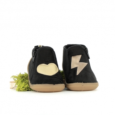 Les pantoufles Aclaire Noir pour filles s’enfilent en un clin d’oeil. Elles offrent un confort et un maintien des pieds inégalés. Leur semelle souple et antidérapante promet une exploration de la maison en toute sécurité. Quelque soit la situation, pas besoin d'excuse pour enfiler nos jolis chaussons douillets. Disponibles de la taille 20 à 30.